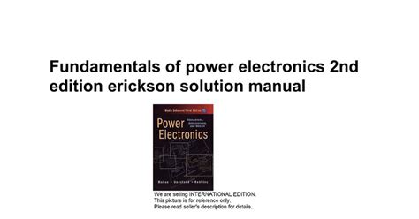 Download FUNDAMENTALS OF POWER ELECTRONICS ERICKSON SOLUTION MANUAL Epub ManyBooks
